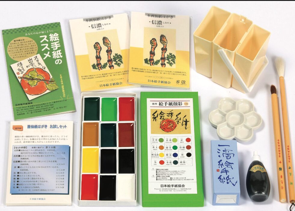 ■吉祥絵手紙顔彩20色を中心とした 絵手紙入門セット